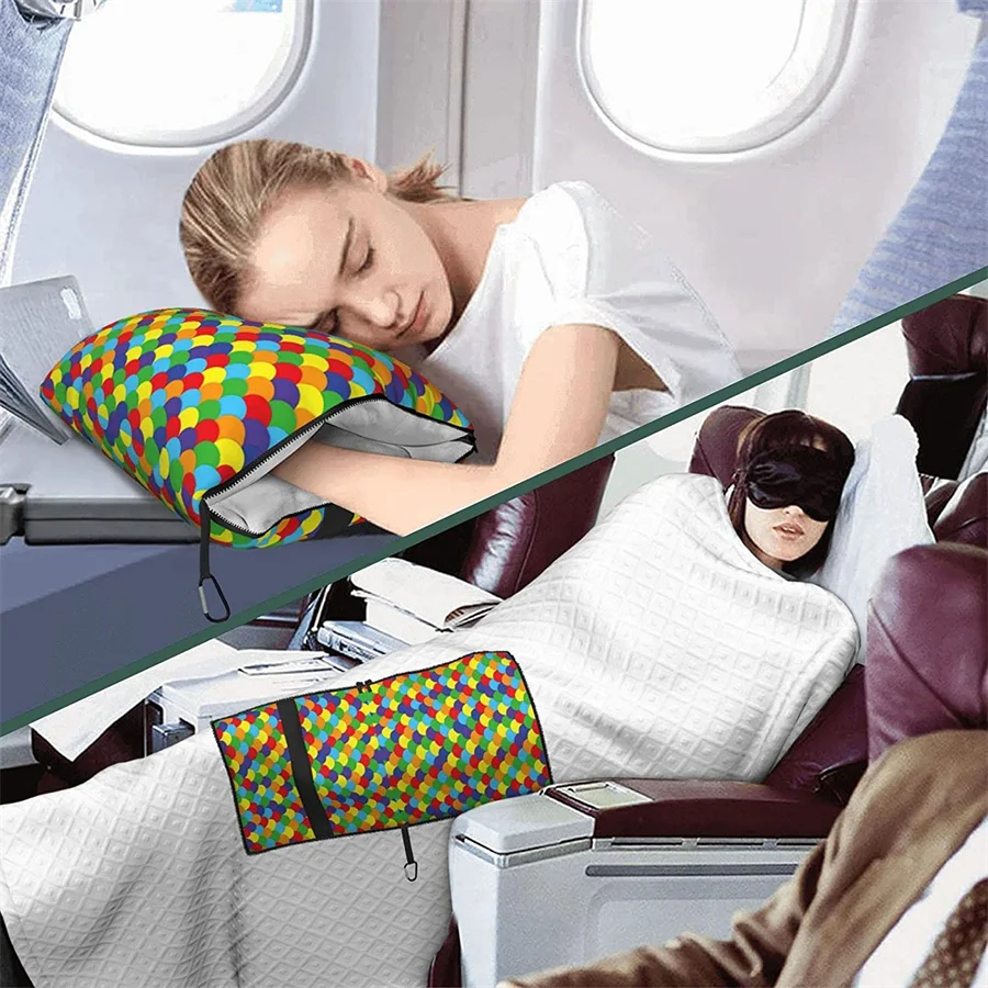 Product Name: Abstrato Arco-íris Peixe Escala Viagem Travesseiro Cobertor Dois-em-um Mochila Cinta E Compacto Avião Saco Cintura Suporte 60x43 Polegadas