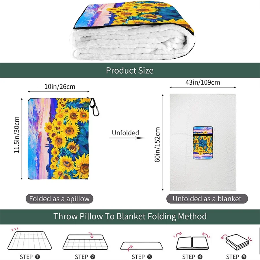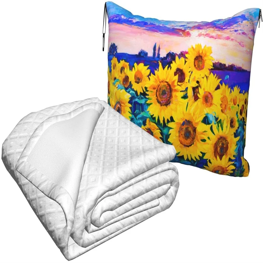 Special Offer Pintura A óleo Girassol Viagem Travesseiro Cobertor Dois-em-um Mochila Cinta E Compacto Avião Saco Cintura Suporte 60x43 Polegadas Discount (8%OFF) Today!
