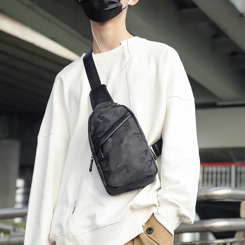 Product Name: Camo Novo Saco De Peito Masculino Maré Estudante Lona Casual Peito Pequeno Mochila Com Interface Usb