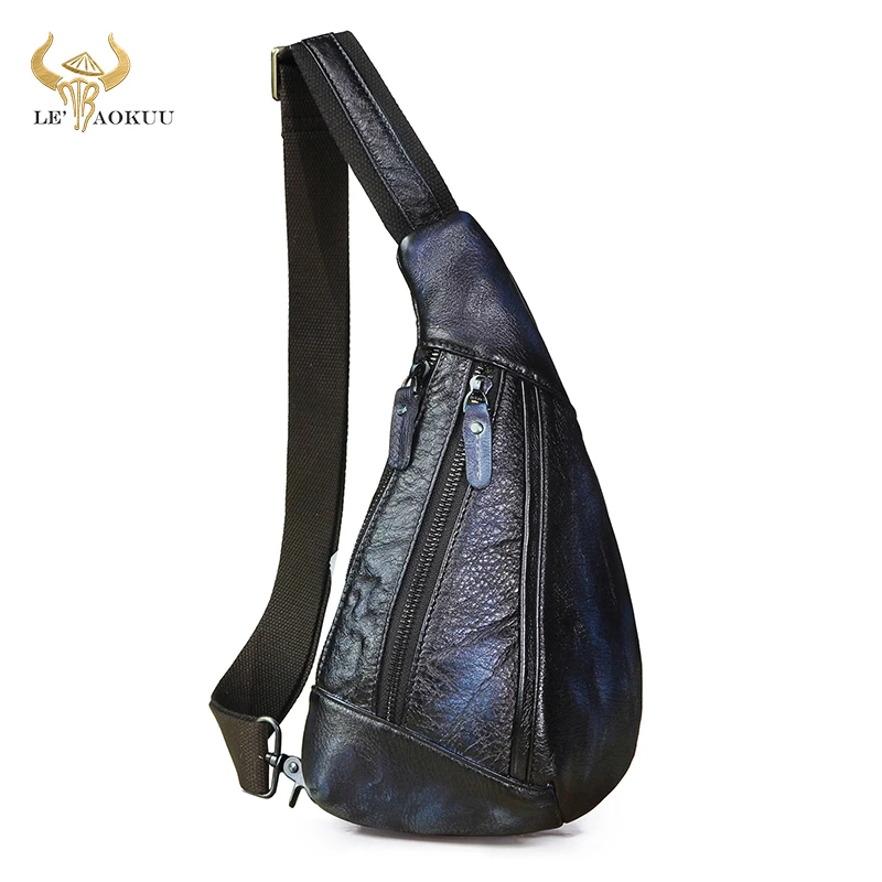 Special Offer Novos Homens De Couro Genuíno Moda Azul Tringle Peito Pacote Saco Design Masculino Estilingue Crossbody Um Ombro Mochila Daypack 8807 Discount (43%OFF) Today!