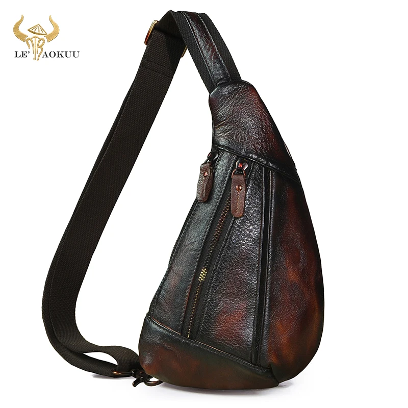 Special Offer Marca De Couro Natural Dos Homens Retro Café Tringle Peito Pacote Saco Design Masculino Estilingue Crossbody Um Ombro Mochila Daypack 8807 Discount (20%OFF) Today!