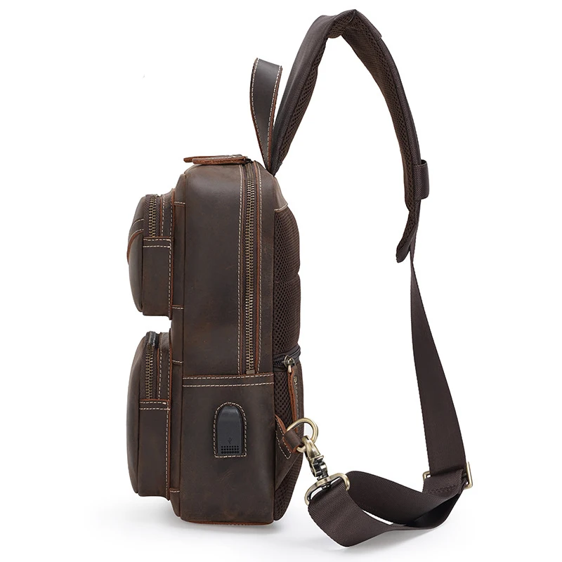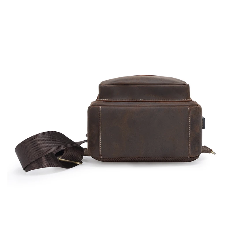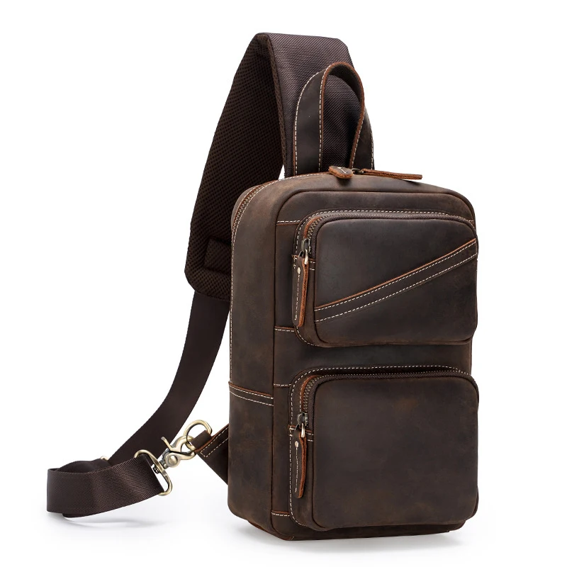 Product Name: Newsbirds Bolsa De Peito De Couro Grande Capacidade Crazy Horse Pacote De Peito De Couro Crossbody Mochila Estilo Vintage Sacos De Peito De Couro